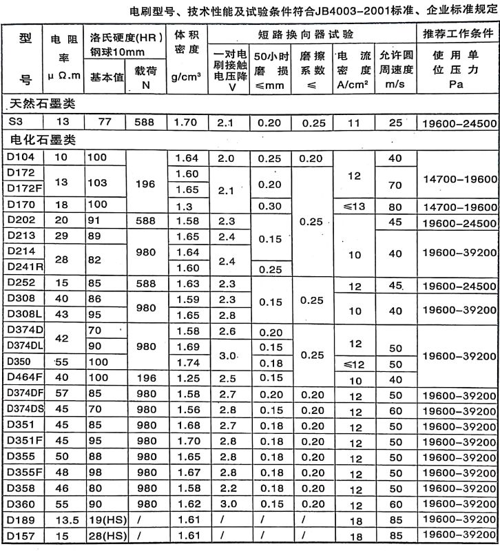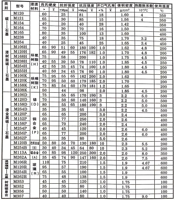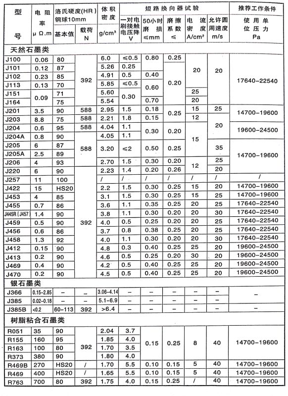 产品说明 机械用-石墨制品、特种石墨制品 型号技术参数 机械用碳石墨材料的耐化学腐蚀性能 机械用碳推广使用范围及工作条件 高纯石墨/模具石墨性能与用途 电机用-电刷、刷架 电刷型号、技术性能 常用电刷结构形式及装配方法 主要用途